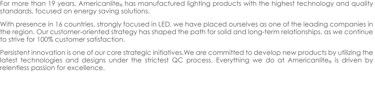 Be the leading brand in LED lighting by continuously devoting our talent and technology to create superior quality products that contribute to energy savings by helping the environment. Our commitment: continuous innovation to illuminate your worldTM